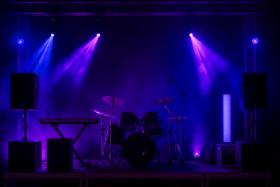 Location de matériel : sonorisation, éclairage, machines à effets et équipements scéniques professionnels.